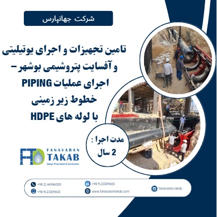 پروژه تامین تجهیزات و اجرای یوتیلیتی و آفسایت پتروشیمی بوشهر – اجرای عملیات PIPING خطوط زیر زمینی با لوله های HDPE